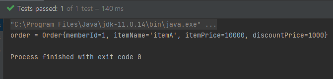 return new Order(memberId, itemName, itemPrice, discountPrice);