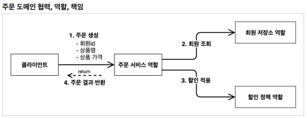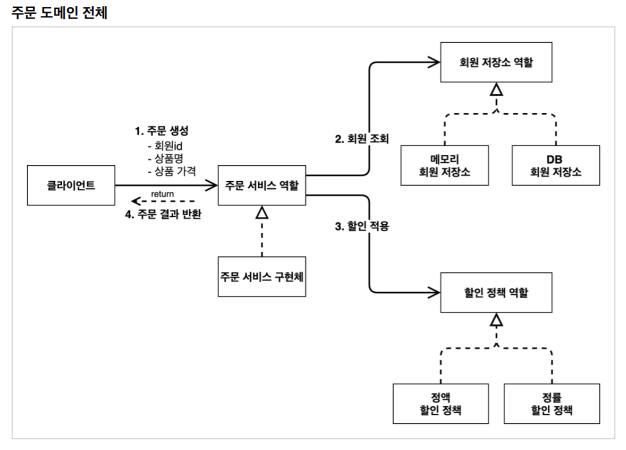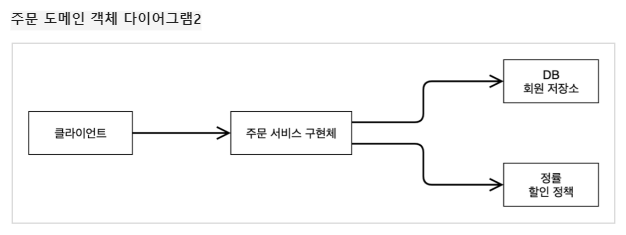 - 할인 적용 : 주문 서비스는 회원 등급에 따른 할인 여부를 할인 정책에 위임