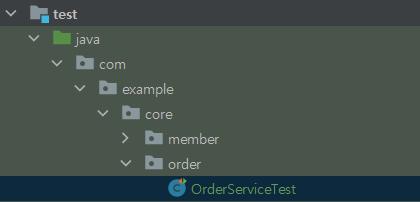 test쪽 디렉토리하위에 order 디렉토리 생성 후, OrderServiceTest 클래스를 생성한다.